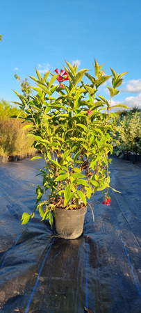 🌿 Oferujemy piękny, dobrze ukorzeniony egzemplarz krzewuszki ‘Brigela’ w donicy C3 o wysokości ok. 70 cm.